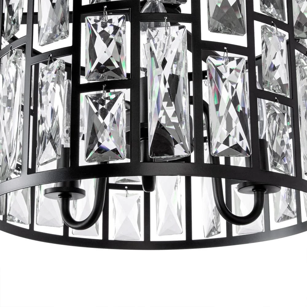 Adorned with multiple rectangular hand-crafted crystals inserted into specially-designed laser-cut frames, the Kristella 3-Light Semi-Flush mount light is the perfect, elegant addition to your home or office. Featuring a sleek black finish, it uses warm, incandescent lighting for a subtle glow. Hardware is included for easy installation.