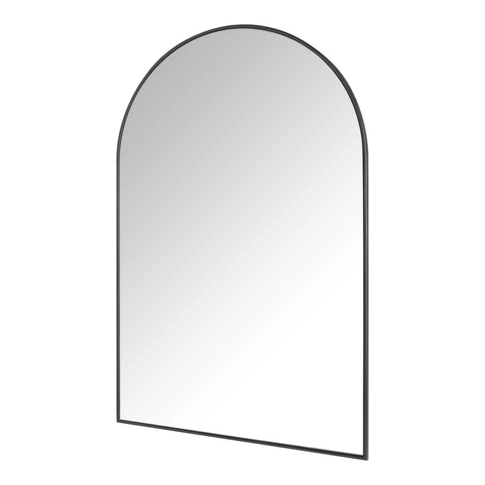 The Large Arched Black Classic Accent Mirror from Home Decorators Collection features a dome-shaped design that complements a classic style of decor. Its composite frame is black to match the color scheme in any room of the house. With pre-installed D-rings on the back, this elegant mirror can be hung up securely without much hassle. Wipe the reflective surface with a soft, dry cloth to keep it clean.