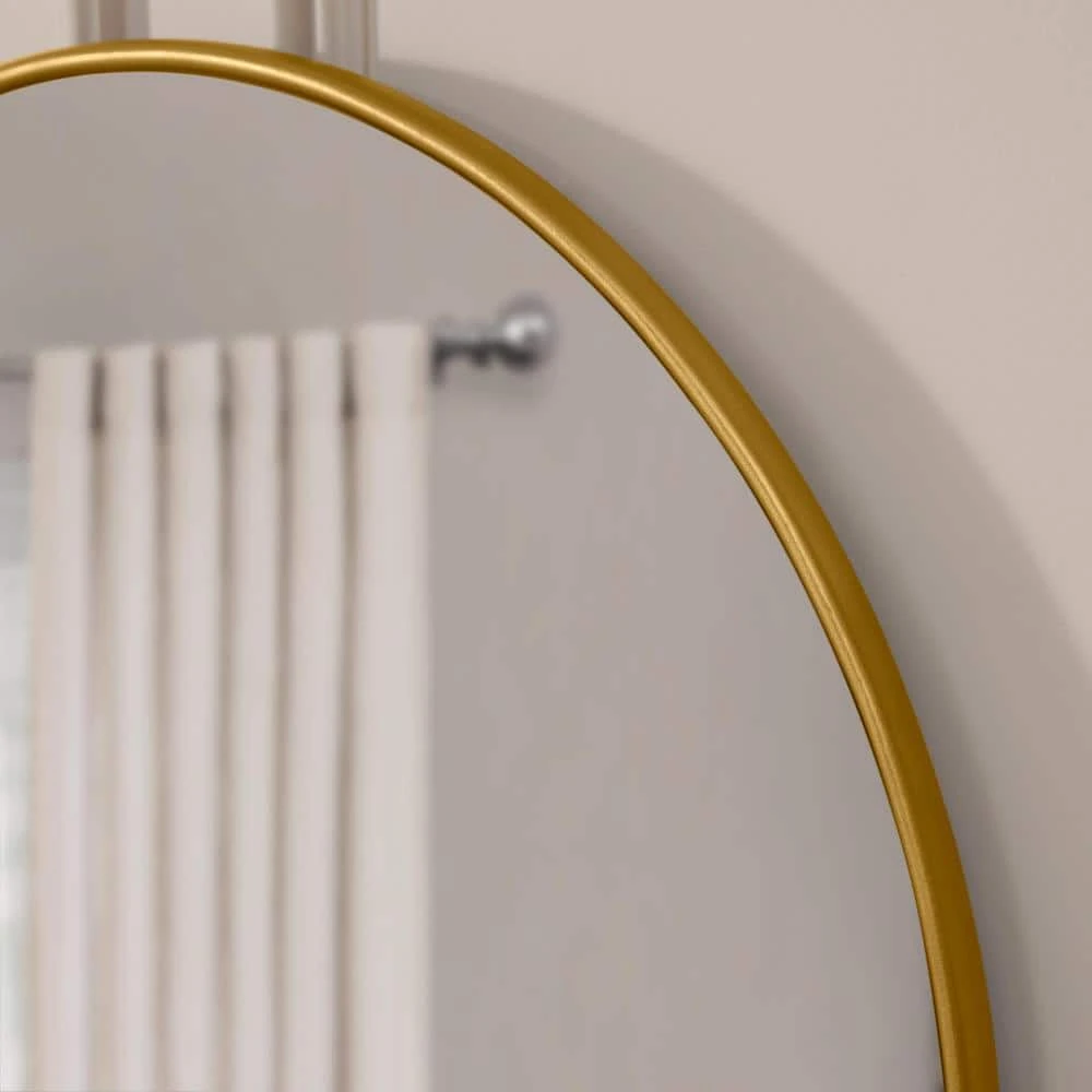 The Large Arched Gold Classic Accent Mirror from Home Decorators Collection features a dome-shaped design that complements a classic style of decor. Its composite frame is gold to match the color scheme in any room of the house. With pre-installed D-rings on the back, this elegant mirror can be hung up securely without much hassle. Wipe the reflective surface with a soft, dry cloth to keep it clean.