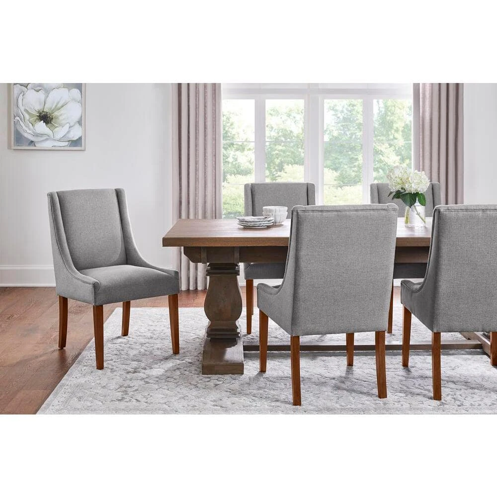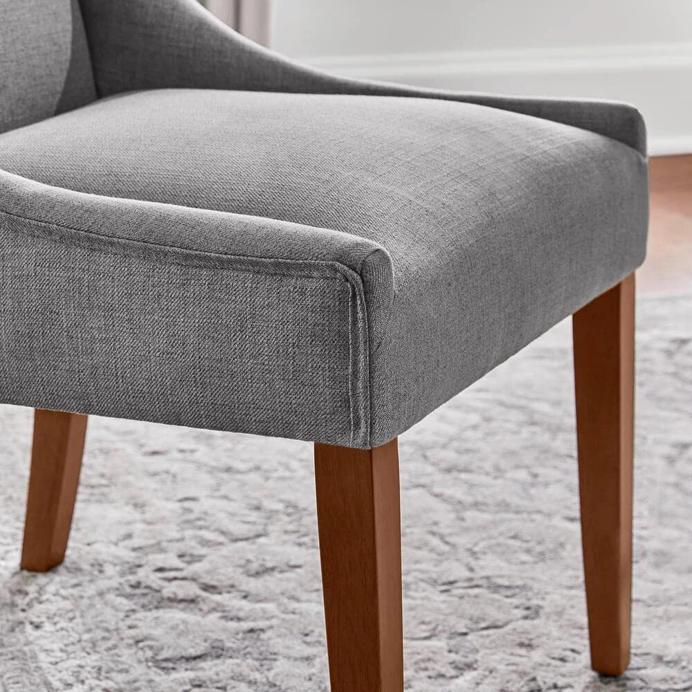 Crafted with a gorgeous linen fabric, this classic side chair features a timeless wingback design and exudes modern elegance. The sturdy antique walnut finished rubber wood legs steadily support the design and provide lasting durability. With the abundantly soft cushions, you will feel great comfort and get maximum rest. To instantly elevate your dining room and create the dreams of your dining room, it’s a good choice of you to update to this beautiful wingback side chair.