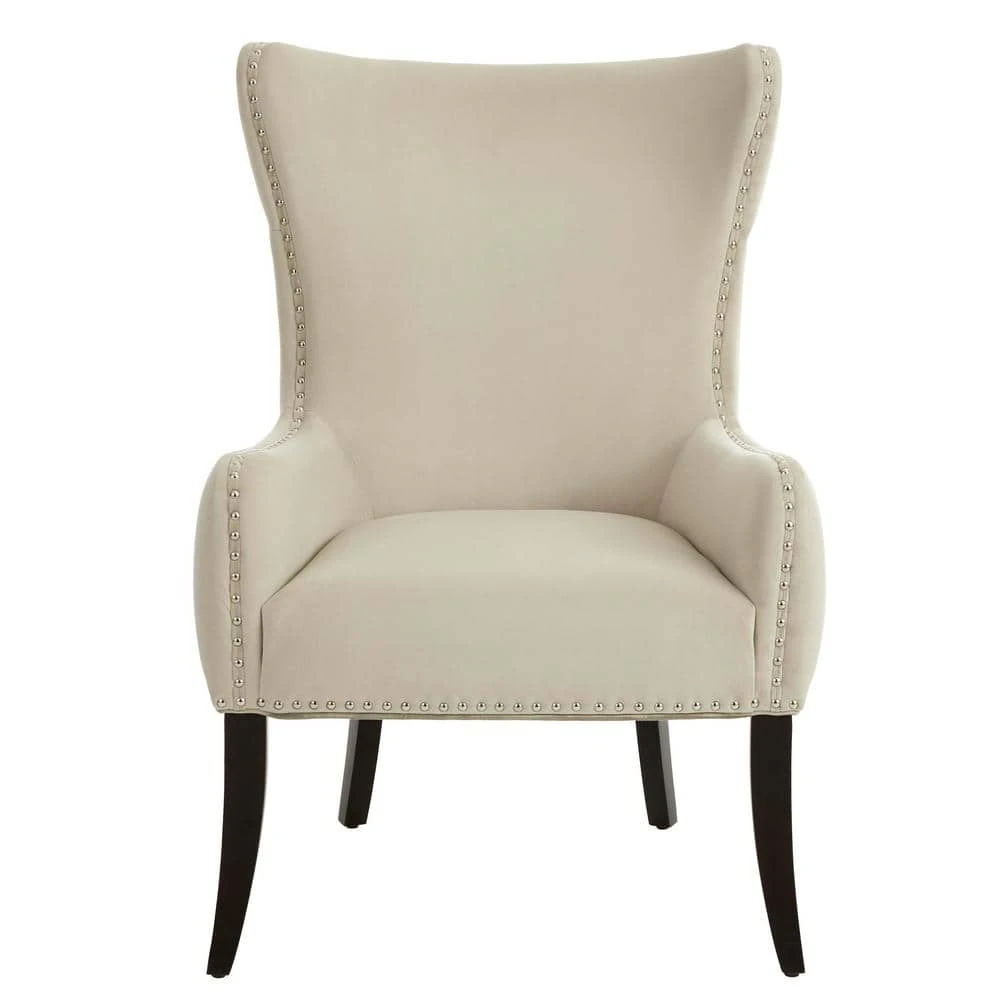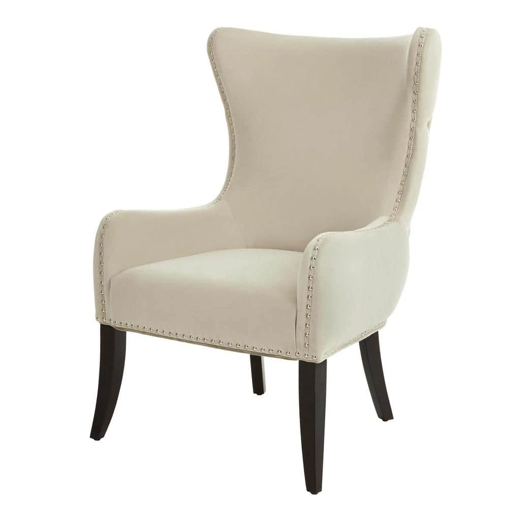 Create an escape in your living room for reading or relaxing with this HDC Maeford accent chair. A modern take on the classic wingback silhouette offers a unique look, while the padded seat and slightly raised arms provide plush comfort. The solid wood tapered legs and biscuit fabric coordinate with an array of design themes, offering a versatile addition to your existing furnishings. This HDC Maeford accent chair features nailhead trim for an upscale finishing touch.