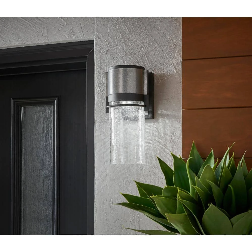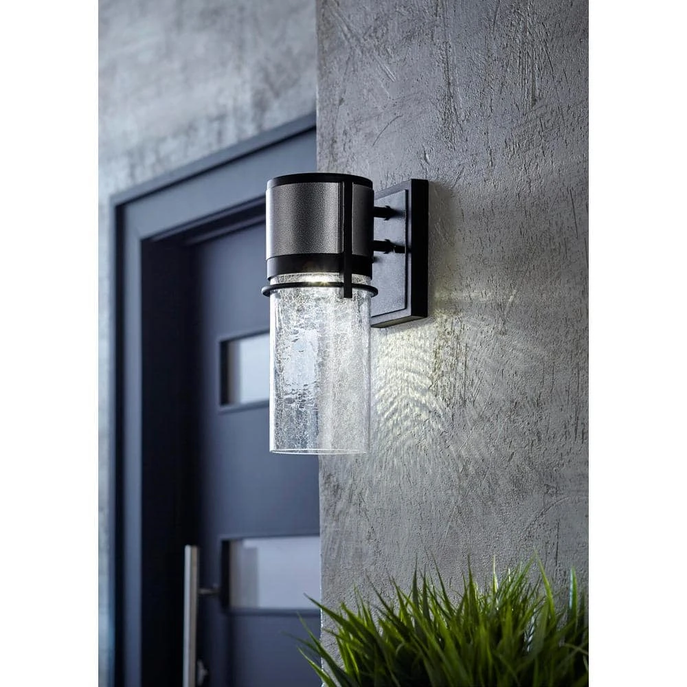 This LED powered outdoor wall lantern brings style and durability together with energy savings. The LED light source inside produces the same light as a regular bulb using a fraction of the electricity and the LEDs never need replacing. The unique, rugged style of this lantern complements the exterior decor of any home. The Majestic Black finish and clear seedy glass provide a rustic appeal from the fixture and warm glow from the light. The sturdy, weather resistant construction and waterproof seal protects the lantern from harsh outdoor elements to ensure the long life of the fixture. These outdoor lanterns install easily, are maintenance free and deliver welcoming, safe and reliable exterior lighting for less cost. With a wall lantern you’re able to light up walk ways and entry ways making it perfect for outdoor areas, such as doorways, porches, garages or car ports.