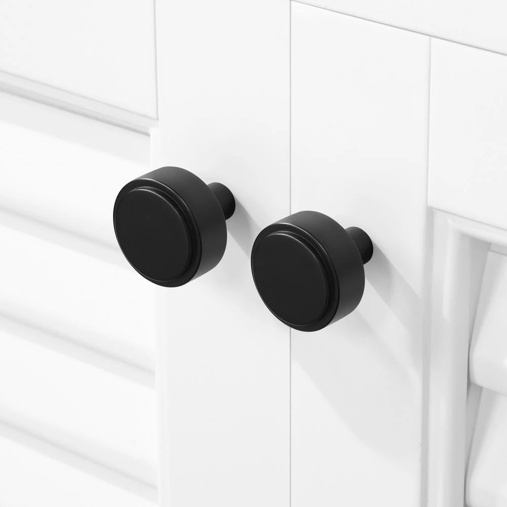Improve the look of your bathroom with this Marksfield 24 in. W x 22 in. D Bath Vanity in White with Cultured Stone Vanity Top in White with White Basin. This adds an elegant touch to your space. It features black hardware details, a marble top and ceramic sink.
