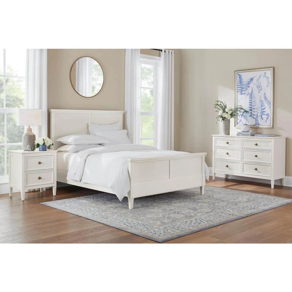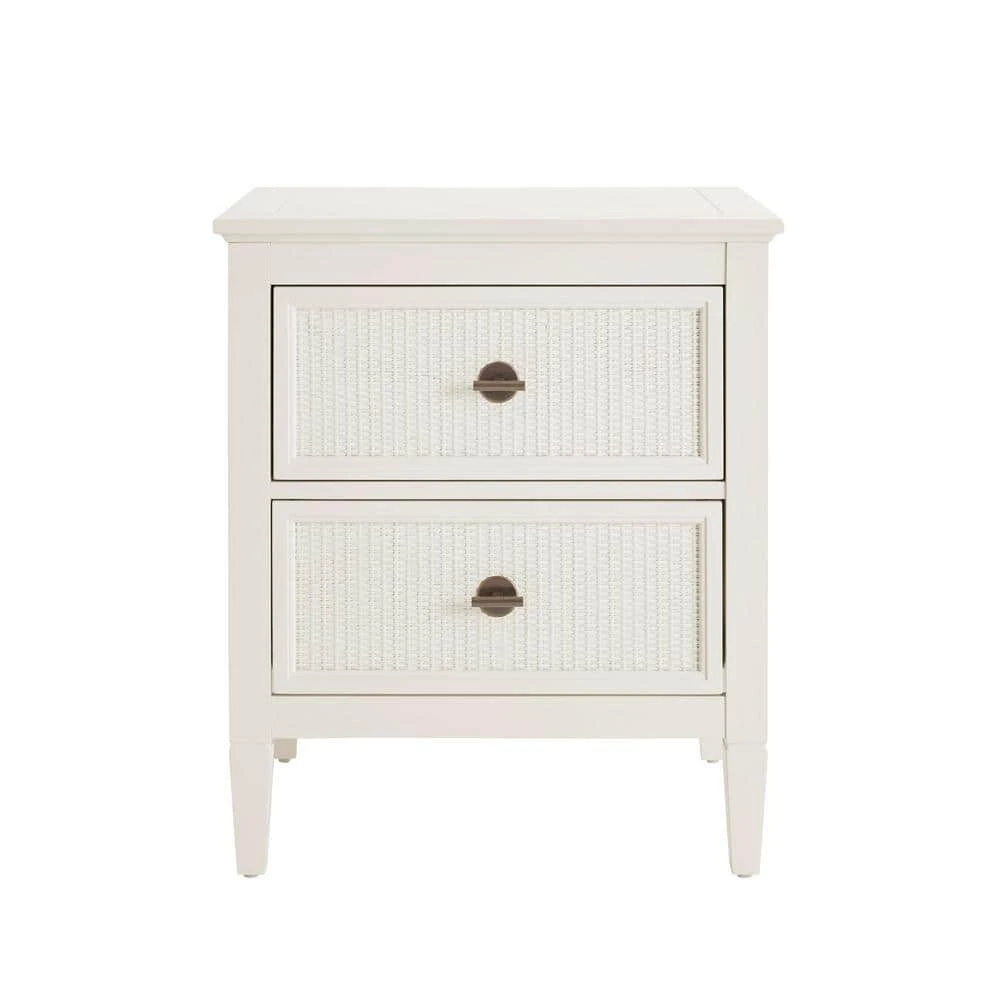 The Marsden 2-Drawer Wooden Cane Nightstand in Ivory is the perfect addition to your bedroom. This nightstand features a total of two stacked drawers accented with woven rattan cane fronts for the perfect organic, textural contrast to your space. Constructed with a simple wooden frame in an ivory finish and classic oil-rubbed bronze hardware, this nightstand brings a light, airy feel that easily adapts to a modern transitional or coastal chic style. Standing at 24″ W x 28″ H, the Marsden 2-Drawer Nightstand is the perfect storage option for all of your bedtime essentials. The Marsden 2-Drawer Nightstand is exclusively offered by the Home Decorators Collection and comes in ivory, black, and patina wood finishes. For a full bedroom refresh with a relaxed modern flare, be sure to check out the coordinating bed, chest of drawers, and dresser offered in the full Marsden Cane Collection.