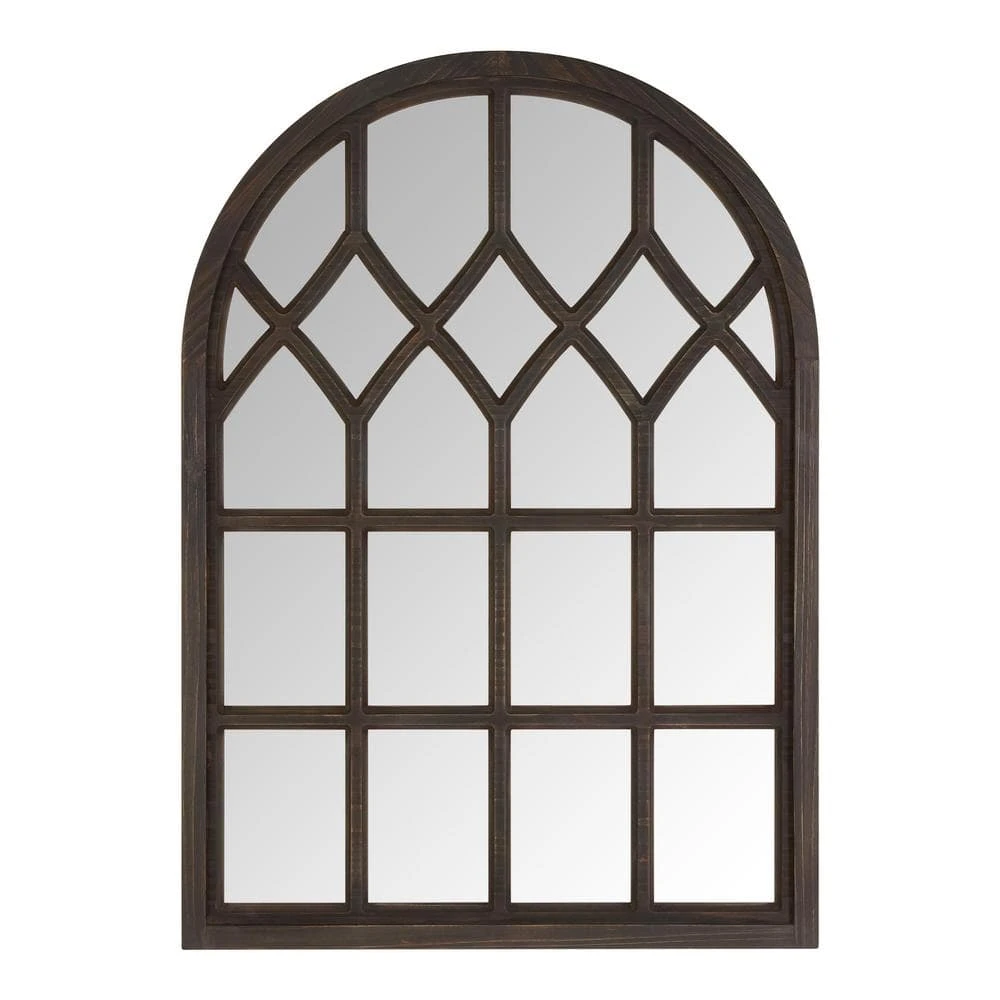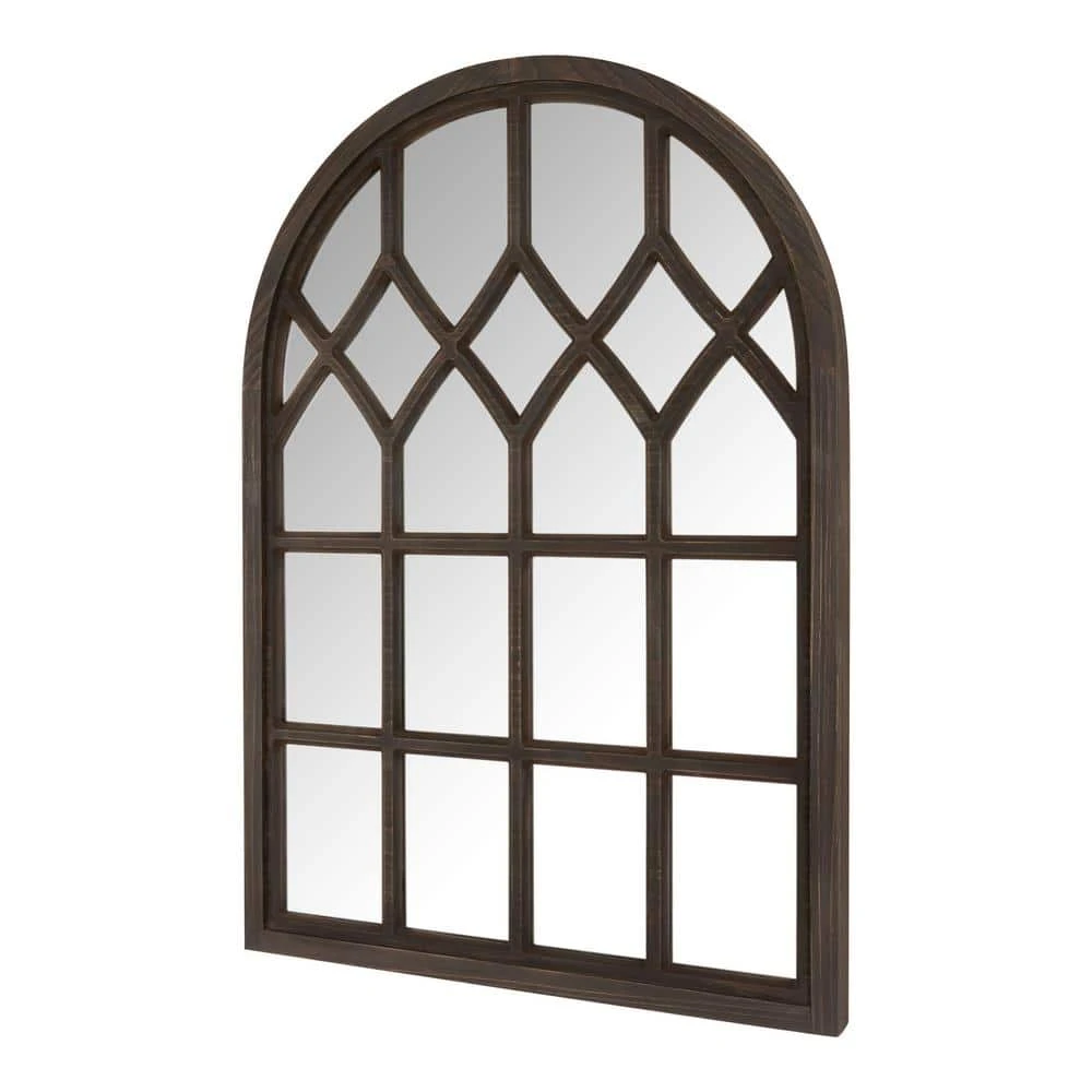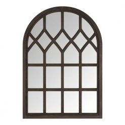 The Medium Arched Dark Stained Wood Windowpane Antiqued Classic Accent Mirror from Home Decorators Collection is perfect for accenting your classic-style home decor. It features a wooden frame that ensures durability and supports the reflective surface. This arched window pane mirror serves as an attractive focal point and enhances the visual appeal of any room. The D-ring hooks on the back allow easy and secure hanging. Use a soft cloth and standard glass cleaner to keep the mirror’s surface spotless and clean.