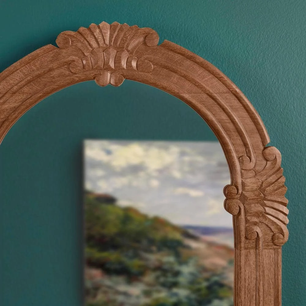 Add an alluring design element with this Home Decorators Collections Classic Arched Wood Framed Mirror. The thick wooden frame features ornate carvings for texture and elegance, while the handcrafted solid mango wood construction offers deep luster and dependable strength. An appealing whitewash finish highlights the luxurious woodgrain, and a convenient D-ring hook allows quick, secure mounting. Due to product’s natural mango wood characteristics, wood tones may vary. Make your room look bigger and brighter with this 32-inch Home Decorators Collections arched framed accent mirror.