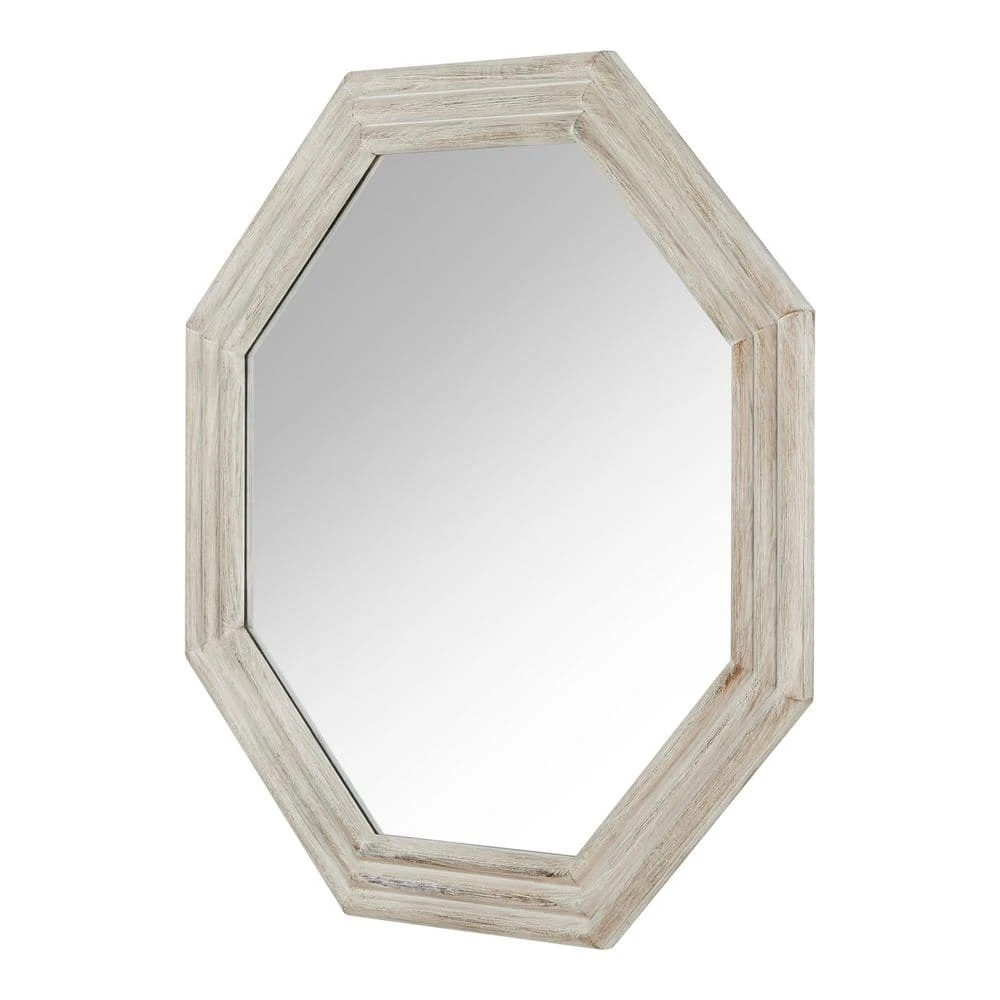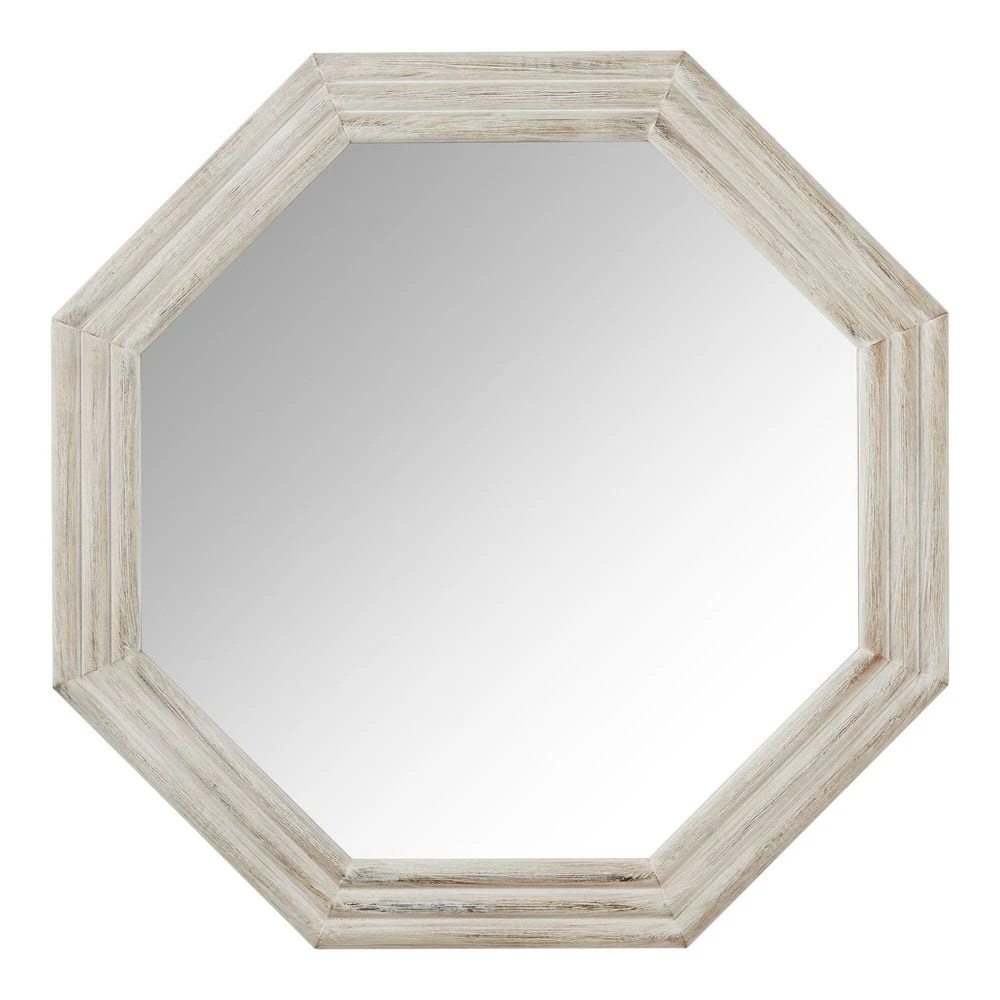 Take one last look before you leave for the day with this Home Decorators Collection Medium Modern Octagon White Wooden Framed Mirror. An octagonal shape brings a distinctive look to your empty wall space, while the wood frame offers lasting use. The white finish matches your modern interior color scheme. This Home Decorators Collection Octagon wood framed features an irregular design, and the distressed wood adds character to the decor.