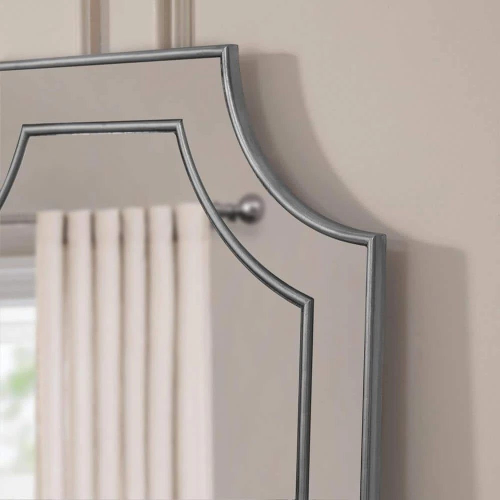 The Home Decorators Collection Medium Ornate Silver Beveled Glass Classic Accent Mirror adds a touch of elegance to your classic-style decor. This beveled mirror with polished edges creates an eye-catching focal point in any room while offering a clear reflection. Its attractive design makes it an ideal gift for weddings, housewarmings or birthdays. The D-rings installed on the back allow for easy hanging and secure placement of the mirror. Use a standard glass cleaner and a soft cloth to wipe dust and dirt off the surface and keep it clean.