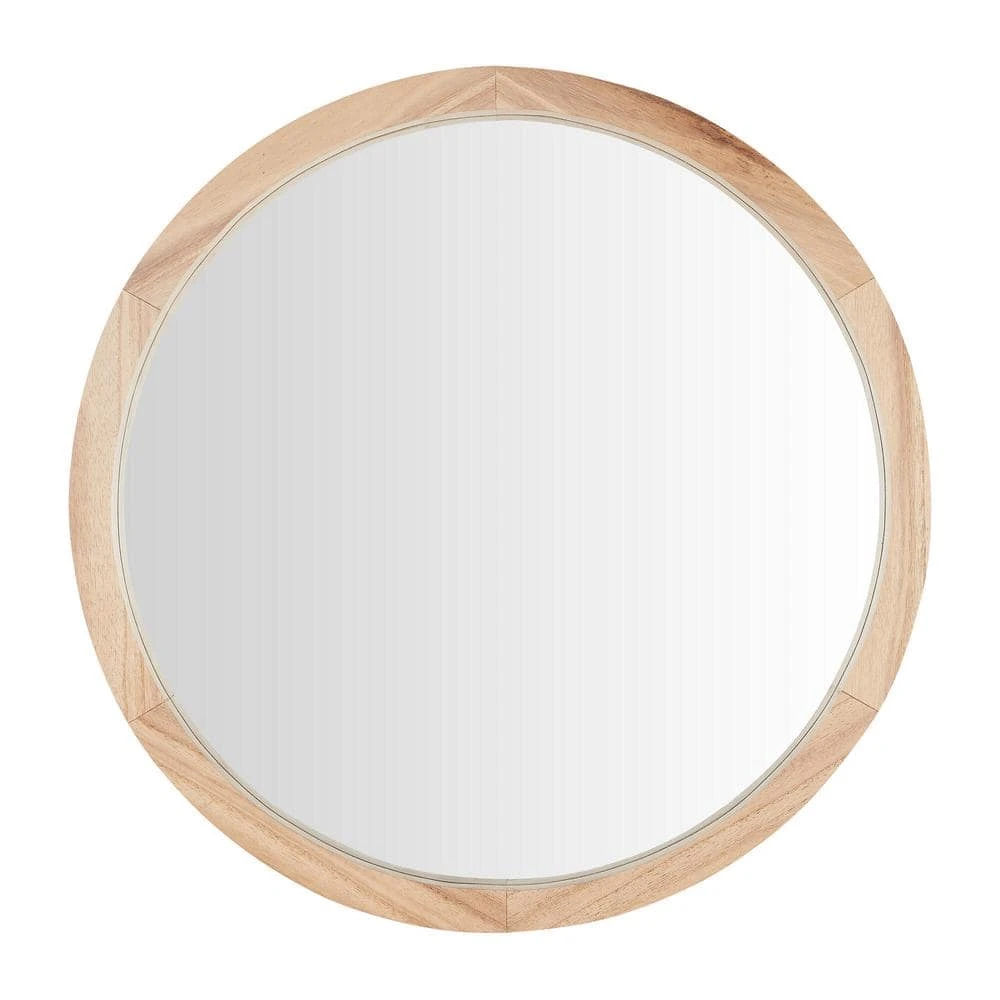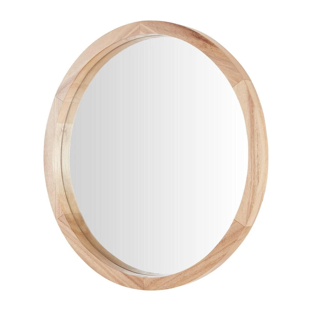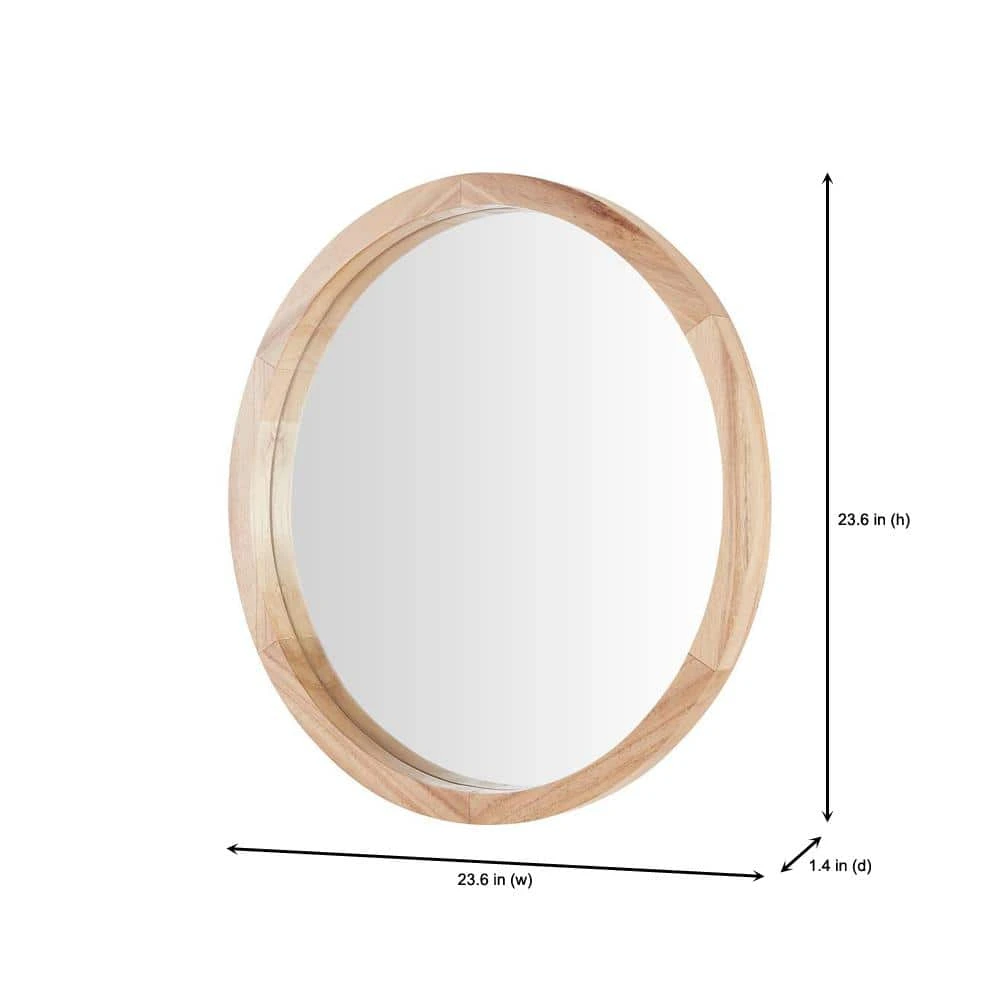 Add a touch of beauty to your entryway or living room with the Home Decorators Collection Medium Round Brown Natural Wood Transitional Accent Mirror. This simple yet elegant natural wooden frame seamlessly blends with any interior decor. The D-ring hooks on the frame ensure effortless installation. The mirror is easy to clean using a dry and soft cloth surface with a standard glass cleaner. This minimalist round mirror makes for an ideal addition to your transitional-style decor.