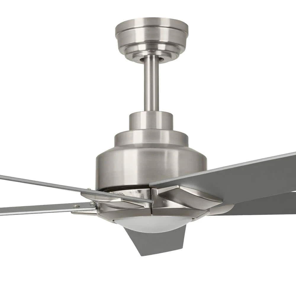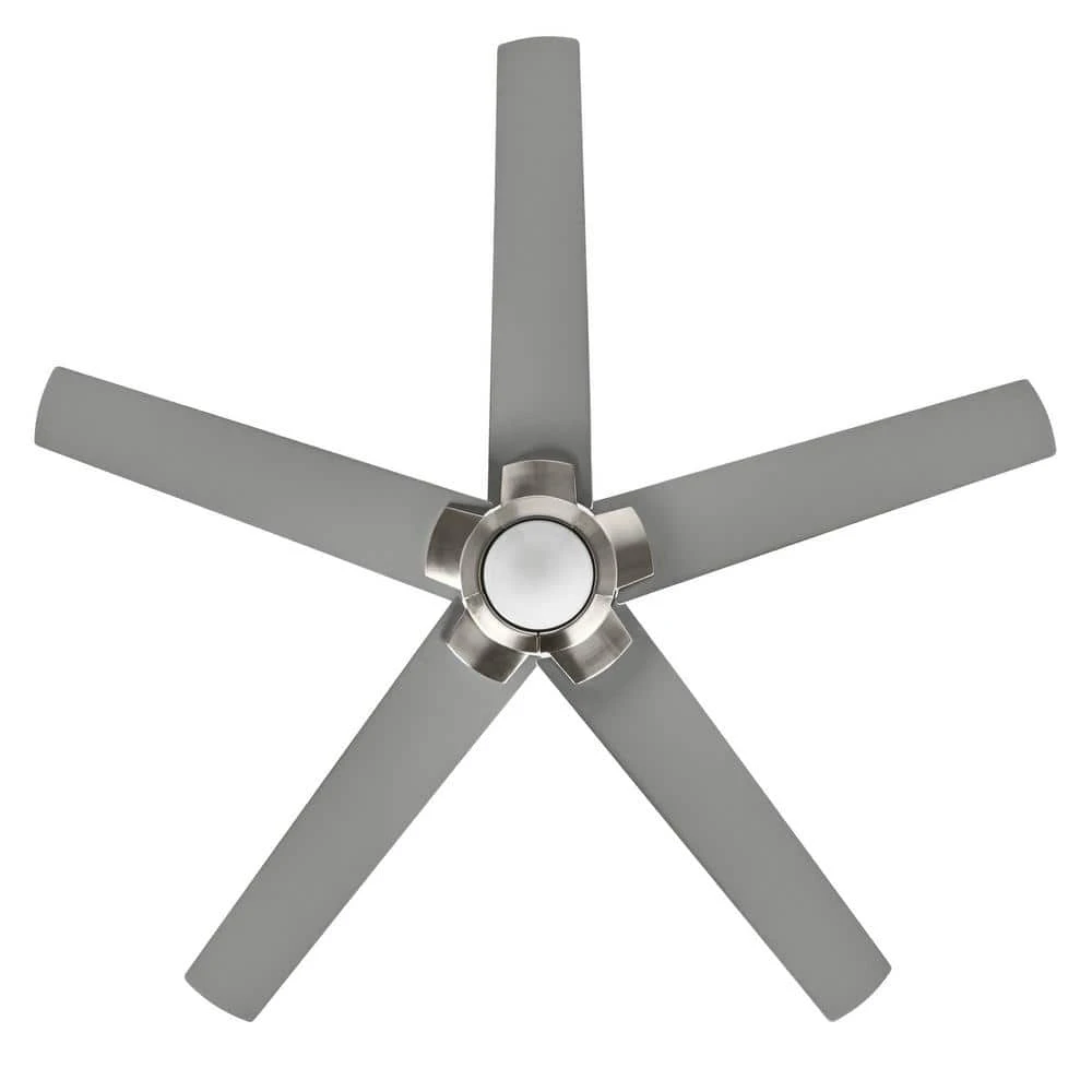 Give a fresh look to your contemporary decor with the 52 in. Mickelson LED Brushed Nickel Ceiling Fan. Ideal for large spaces, this fan features 5 blades for air movement efficiency, with quiet, wobble-free operation. The full function hand held remote control offers independent light and speed controls.