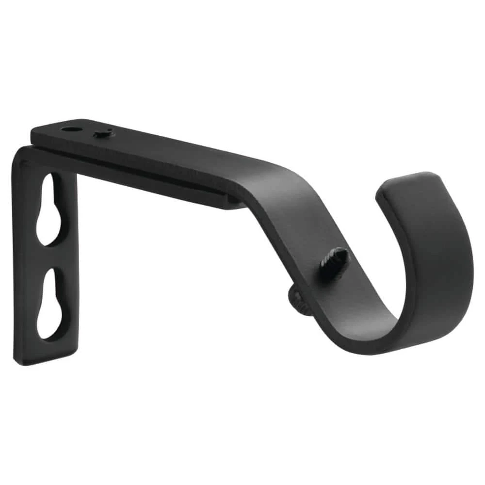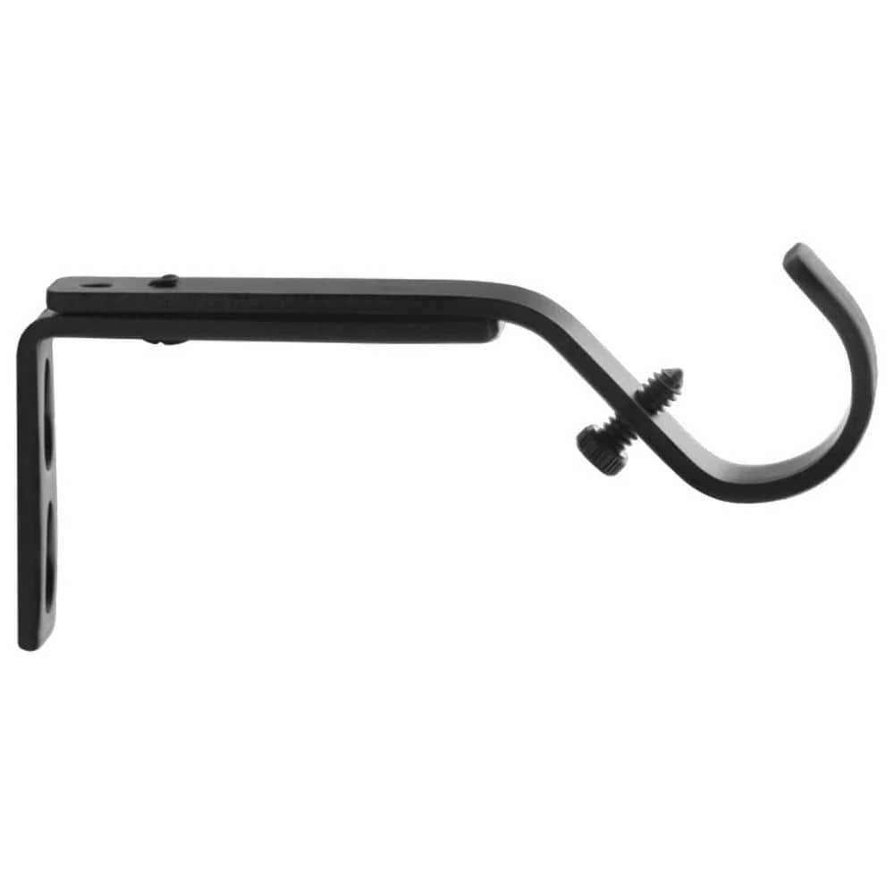 The Mix and Match Series from the Home Decorators Collection offer a range of quality metallic curtain rods, accessories and various finial designs. This set of 2 single rod brackets fits curtain rods up to 1 in. in diameter. Featuring metal construction for lasting durability, these brackets have a matte black finish that accentuates your existing decor. All you will need for a quick and easy installation is a screwdriver or a cordless drill.