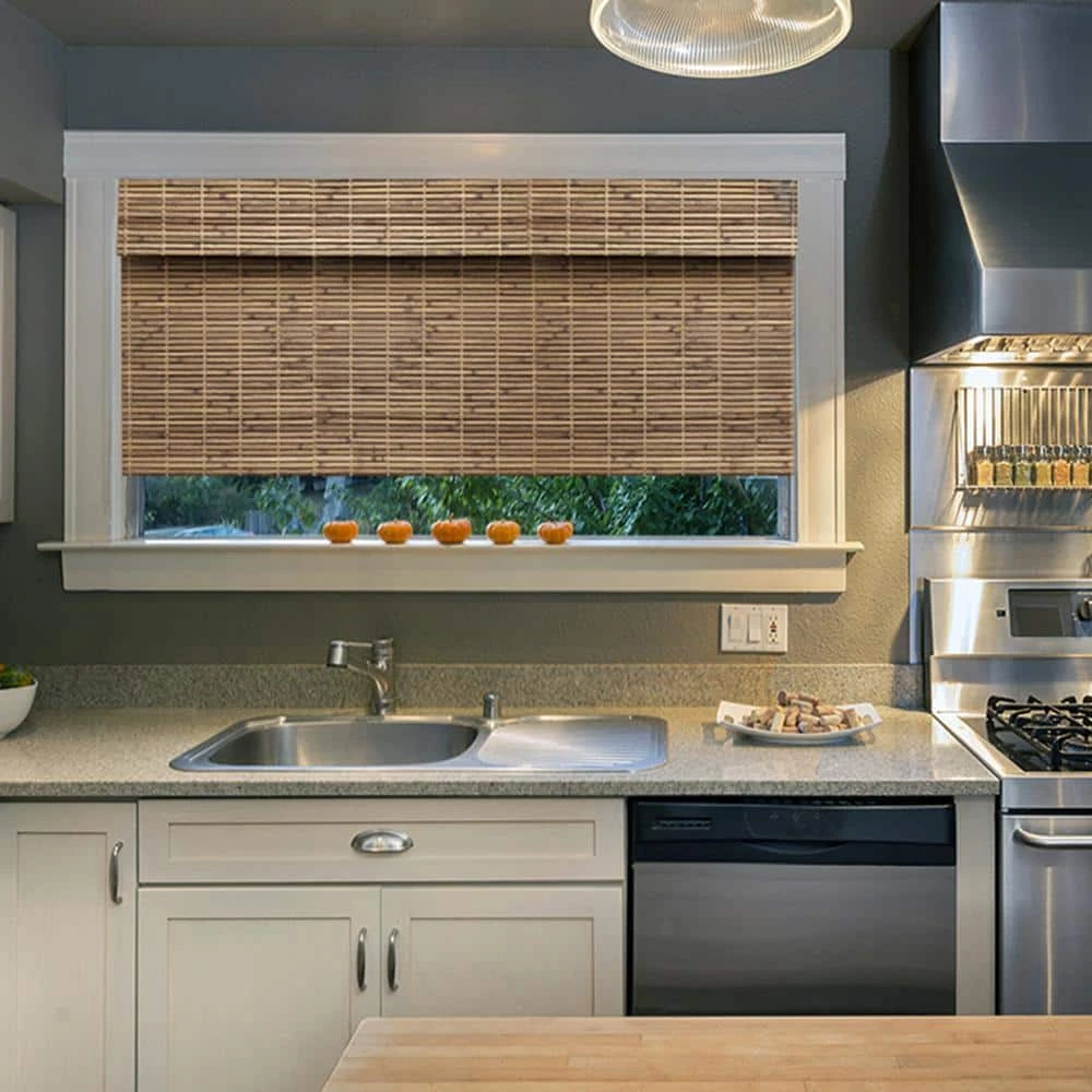 Add a natural element to refine the look of any room with this country chic line of Cordless Driftwood bamboo roman shades. This line of Home Decorators Collection window coverings is made from environmentally friendly material and gives you custom features without the custom price. The addition of texture in this rich gray color will transform your home with style and beauty. Its semi-private design elegantly filters light to help protect your furniture from fading and the natural bamboo will both soften and complement many home decor styles, from traditional to modern. This is the perfect finishing touch to get that coastal-inspired home, mountain lodge or country home feeling. The strikingly beautiful wood tones of natural shades (also called bamboo blinds, bamboo shades or woven woods) are complementary to jute and sisal rugs as well as many hardwood floors and furniture finishes. They come in a broad range of sizes, colors and weave patterns. The innovative cordless operating system makes this shade so simple to use and is Best for Kids certified safe. For additional privacy and less light, it is recommended to add a white or black out roller shade to the window frame, which can be purchased separately on homedepot.com.