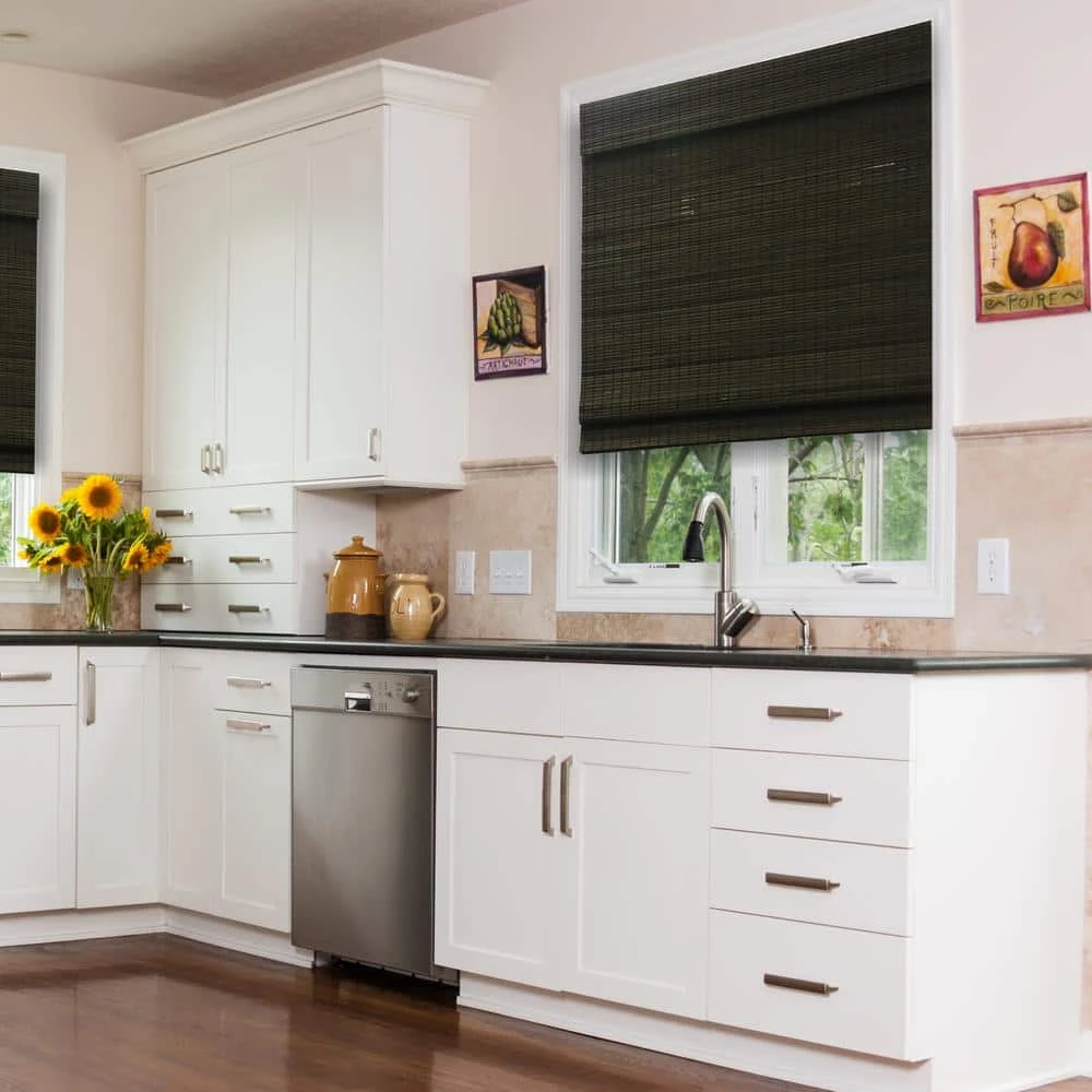Create a retreat in your own home with the addition of this rich line of Cordless Espresso bamboo shades. This series of Home Decorators Collection window coverings are made from environmentally friendly material and gives you custom features without the custom price. Adding texture in this calm and comforting deep espresso color will transform your home with style and elegance. Its semi-private design elegantly filters light to help protect your furniture from fading, and the natural bamboo will both soften and complement your home decor style. From traditional to modern, this is just the right finishing touch to get that vacation retreat, country home or mountain lodge feeling. The strikingly beautiful wood tones of natural shades (also called bamboo blinds, bamboo shades, or woven woods) are complementary to jute and sisal rugs as well as many hardwood floors and furniture finishes. They come in a broad range of sizes, colors, and weave patterns. The innovative cordless operating system makes this shade so simple to use and is Best for Kids certified safe. For additional privacy and less light, it is recommended to add a white or black out roller shade to the window frame, which can be purchased separately on homedepot.com.