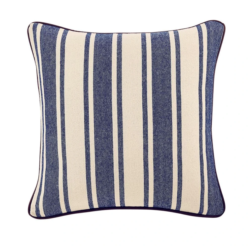 Fashioning a sense of warmth that will radiate comfy vibes throughout your space, our Home Decorators Collection Throw Pillows offer rustic inspired charm that will transform your decor space and be the envy of your guests. The meticulously woven construction of this square standard pillow boasts durability and will provide natural charm into your decor space. Featuring a navy striped piped-edge design, this square throw pillow is perfect for coordinating with other decorative pillows and pieces. Both the decorative cover and poly-fill insert is included, and the zipper closure offers easy removal for added convenience. For best results, spot clean only.