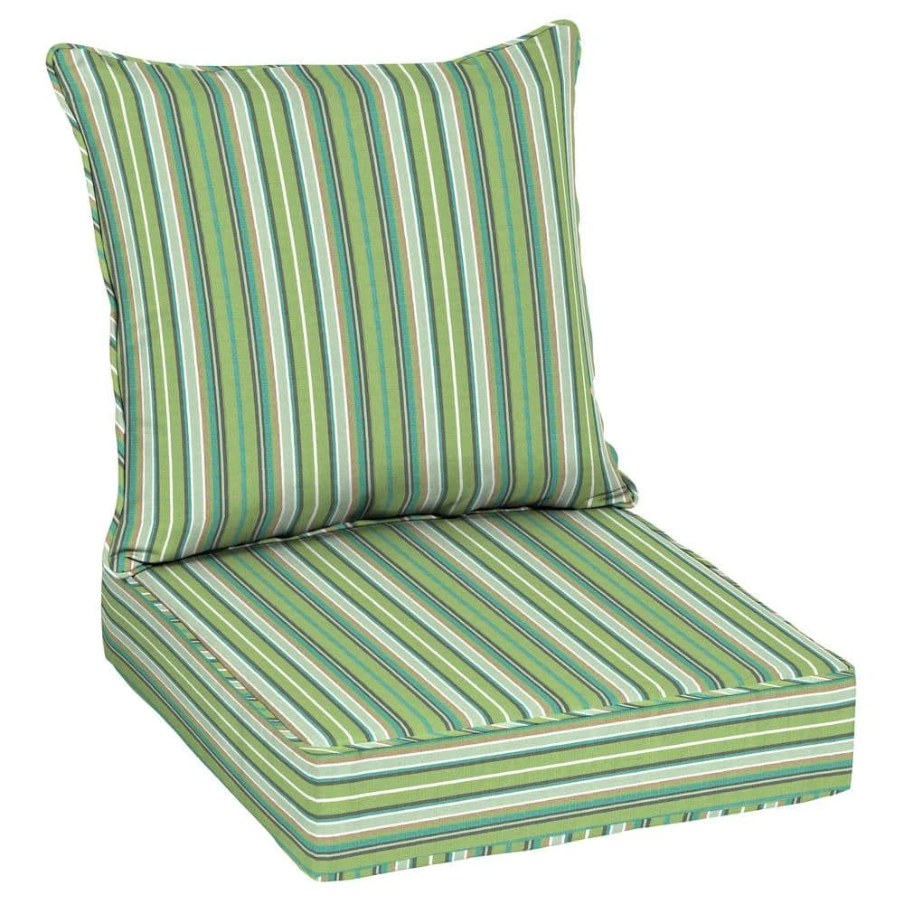 This citrus stripes in Foster Surfside dance between lemon and lime. The green and yellow tones feel zesty, while the subdued nature of the avocado green is vintage and classic. Have some fun by emboldening your outdoor living space with the sharp tang of summertime on this Home Decorators Collection Deep Seat Set. Along with a high-end pillow back cushion, this outdoor deep seat set is enhanced with a stylish double welt cord. Our 46.5 x 24 in. outdoor deep seat set is covered in long-lasting and specially engineered Sunbrella acrylic fabric with built-in UV protection to help retain its vivid color and resist the elements all summer long. Inside our outdoor conversation cushion set we use our patented 100% everLuxe polyester fiber fill to help retain shape and provide long-lasting comfort during outdoor use. Fibers within the cushion are oriented in a vertical position, which provides structure, support, and spring. This outdoor deep seat set is engineered to fit the Oak Cliff furniture set but is also suitable for many other standard outdoor lounge chair frames. Our outdoor deep seat set also comes with a 5-year limited fabric warranty and a 1-year limited warranty against defects in workmanship. Mix and match this Home Decorators Collection Foster Surfside Deep Seat Set with solids, patterns, or stripes to create your own backyard oasis.