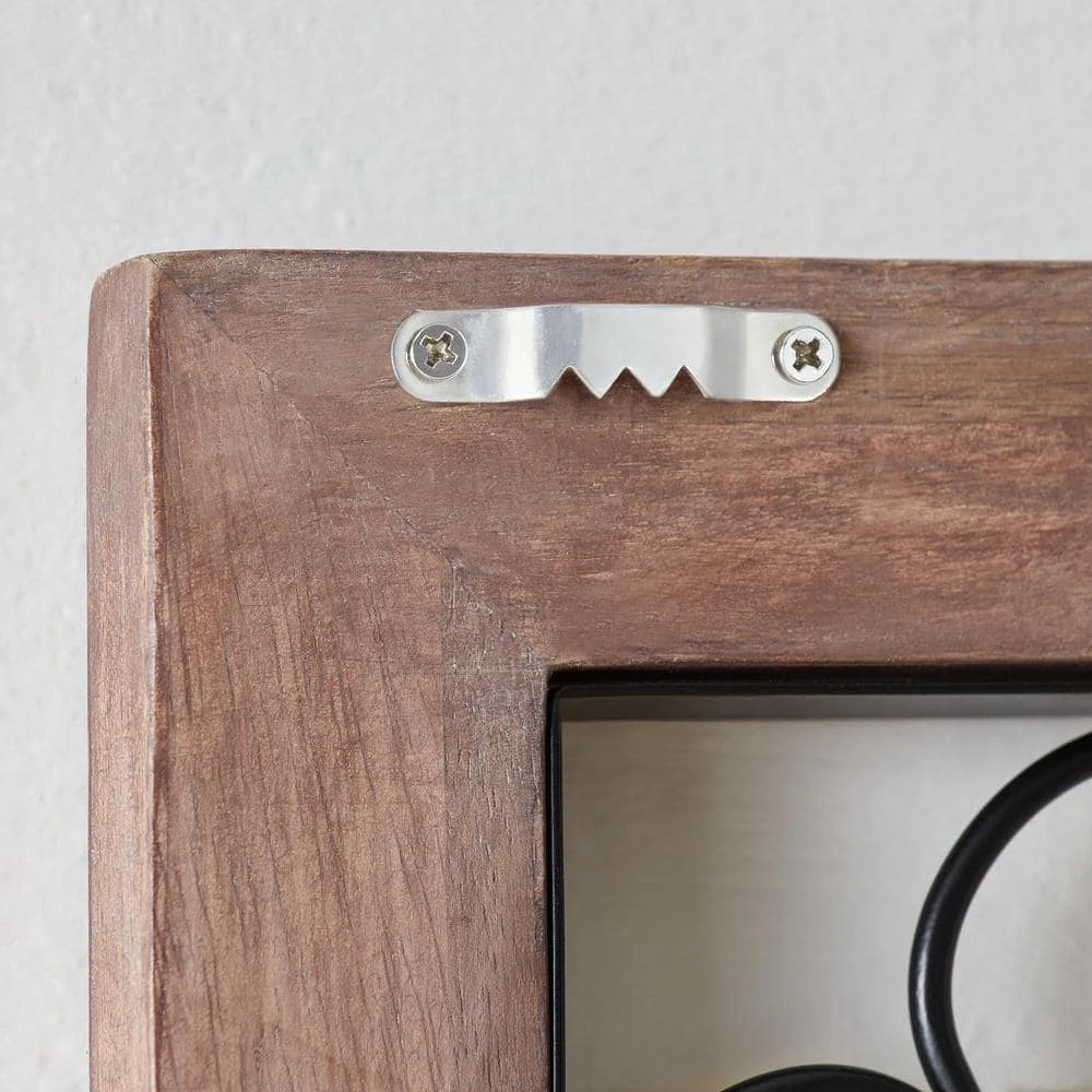 - Black and brown farmhouse wall art adds visual intrigue and symmetry