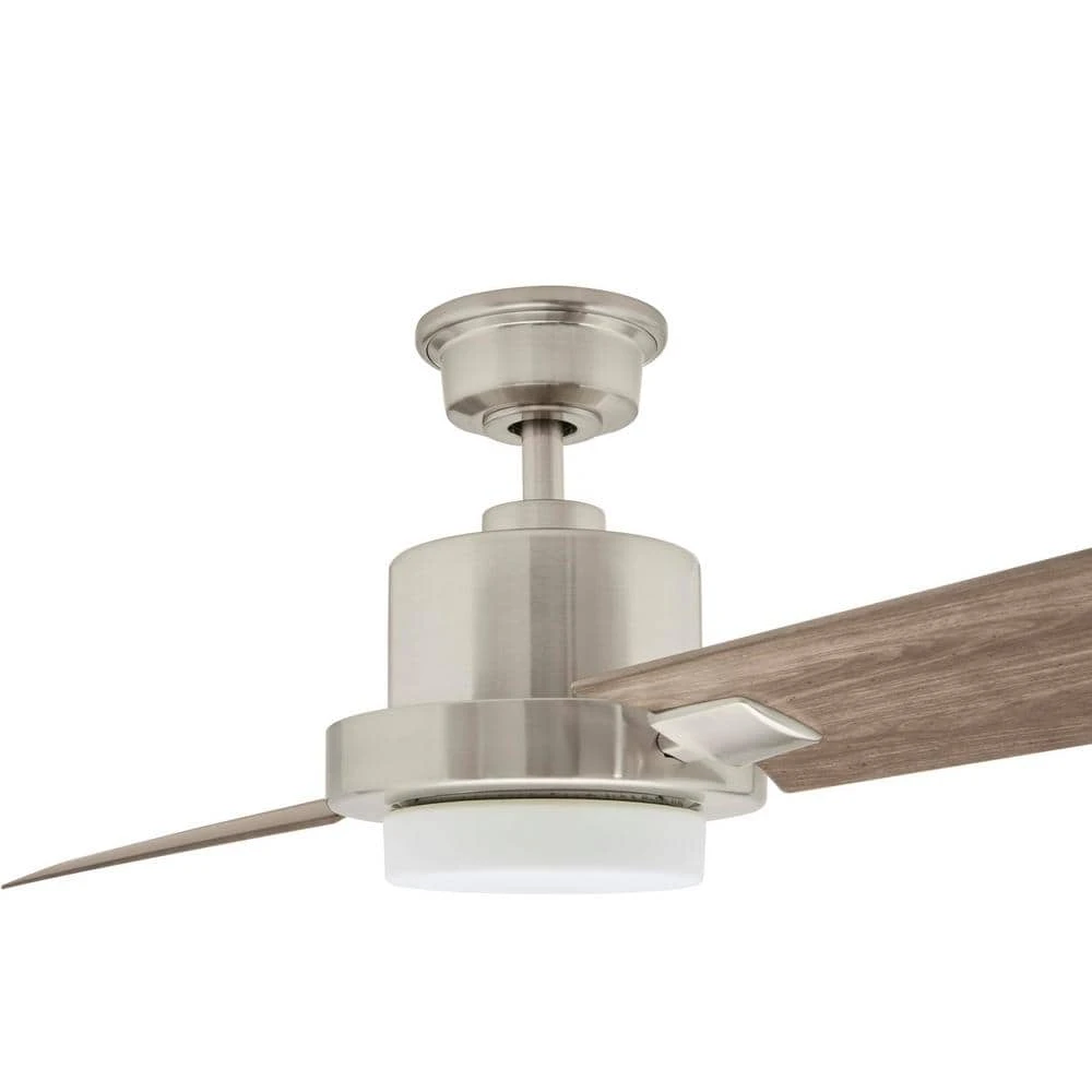 Easily integrate fan and light control into your Amazon or Google smart home system with this Bond ceiling fan bundle. The Bond remote hub pairs with Alexa or Google Home to add voice control convenience to your ceiling fan. The included Bond remote hub is shipped separately. The Radley 60 in. LED Brushed Nickel Ceiling Fan is a very unique 2-bladed fan which will attract positive attraction due to its unique design. This fan can be installed on a standard, sloped or even flush mounted if ceiling height is an issue. The 14-Watt Samsung LED light source is both energy efficient and has a long-life span of 50,000-hours. The remote control operates the light and speed and includes batteries. Also, this fan comes with a lifetime motor warranty.