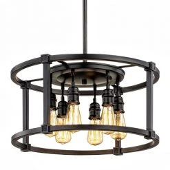 Don’t be fooled by this simple looking Romaro Row 6-light dinette. Sometimes simple is more difficult to manufacture than an extravagant chandelier. The Aged Bronze finish highlights the quality of the frame and the precision of the construction. The early electric bulbs make this the ideal restoration inspired pendant.