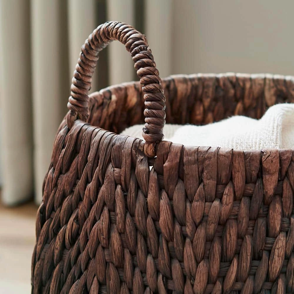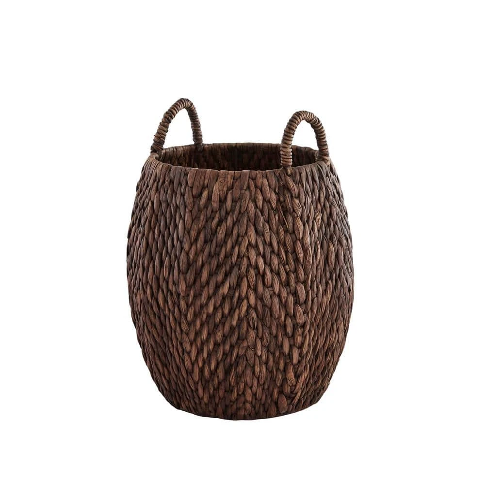 Accent your space or store and carry clothing materials with this HDC poppy basket. Featuring woven water hyacinth, this basket stands up to long-term use, while the dark brown wash adds contrast to your space. The handcrafted design delivers an artisanal storage solution with rich detail that introduces contemporary style. This HDC poppy basket has a metallic frame for reliable strength and support, and the spacious interior provides ample room for toys or clothing.