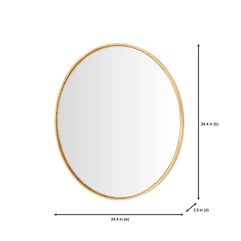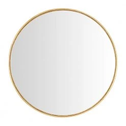Create an eye-catching focal point in any room with the Home Decorators Collection Round Convex Mirror in Gold. It features a rounded, convex mirror surface that brings additional depth and dimension to any room. Finished in a classic gold color and constructed from a durable composite frame, this mirror is the perfect accent piece for your home. This decorative mirror comes with D-rings at the back to allow for easy hanging. Cleaning is as easy as wiping the mirror’s surface with a soft cloth and standard glass cleaner.