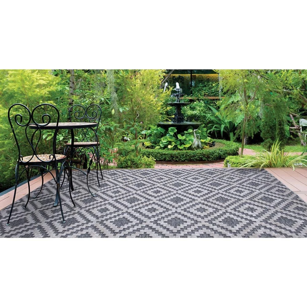 Set an indoor or outdoor stage with this gorgeous rug. Whether you have a covered patio surrounding a courtyard with a pool, or a small nook, let this geometric tile look make you feel you are in the gardens of famous Alhambra palace. It’s your choice to use this as indoor or outdoor, this multi textured rug will turn your space into an elegant escape. Featuring a high/low pile textured effect this overall low pile rug is easy to maintain. Add a rug pad for additional benefits such as non-slip application, prolongs wear and tear life cycle, as well as protection for the floor underneath your area rug if kept indoors.