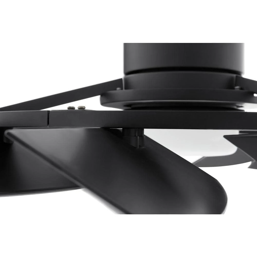 The 36 in. LED Indoor/Outdoor Matte Black Ceiling fan is great for small rooms and has a very unique design which will modernize any room. Also, this is damp rated and can be installed under a covered ceiling for outdoor use. The remote control will control the light and speeds and includes the batteries. This fan includes a lifetime motor warranty for peace of mind. DC motor fans are 70% more energy efficient than AC motor fans (when comparing efficiency (CFM/W) of DC vs AC motors in published FTC Energy Guides for ceiling fans).