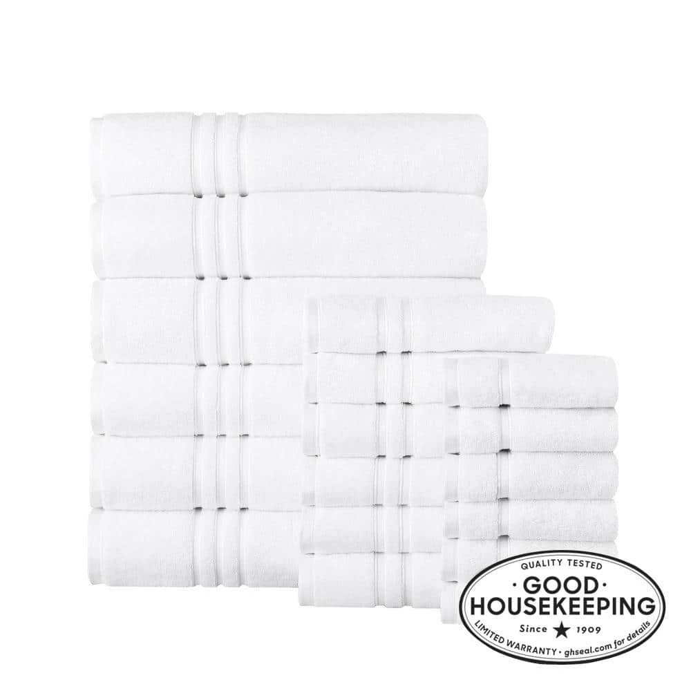 Crafted in Turkey by master weavers for exceptional quality, this soft and absorbent 100% Turkish Cotton bath sheet towel set from Home Decorators Collection offers superior strength and durability at a great value. The long staple Turkish cotton is combed before weaving, which removes short staple cotton fibers to ensure an extra soft bath towel that is low linting. For effortless care, these turkish bath towels are also machine washable and get softer with every wash. This 18-Piece Turkish Cotton Bath Sheet Towel Set contains 6 bath sheets, 6 hand towels and 6 wash cloths (Bath Sheet 34 in. x 70 in., Hand Towel 16 in. x 30 in. and Wash Cloth 13 in. x 13 in.). You can be confident in your purchase as this turkish bath sheet set is certified STANDARD 100 by OEKO-TEX, meaning it has been independently tested for harmful substances according to strict scientific criteria that go beyond global legal regulations.