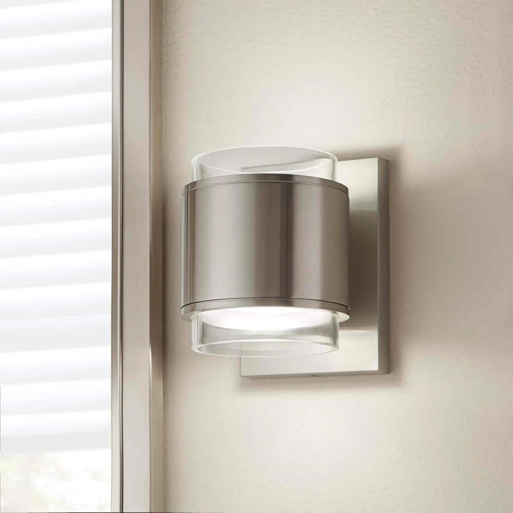 Illuminate your living space with this Energy Star rated LED Brushed Nickel Wall Sconce. This easy to install contemporary wall light features a brushed nickel finish paired with clear acrylic for a clean, minimalist appearance. Simple to maintain and simple to coordinate with other light fixtures, this wall light will help to maintain a polished look throughout your home.