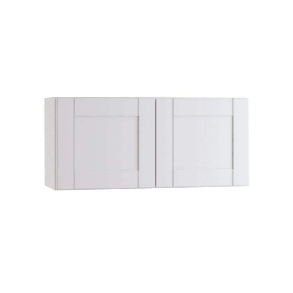 The Washington Vesper White collection from Home Decorators Collection features a durable White vinyl clad finish which will create a light, breezy feel in any kitchen. Shaker-style doors and drawer fronts are crafted from MDF with a flat recessed center panel. Cabinets feature CARB II compliant plywood construction with full depth 3/4 in. thick adjustable shelves for added storage.