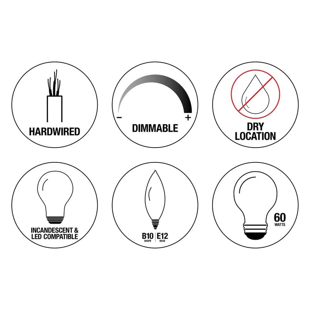 - Uses (4) 60-watt candelabra base bulbs, not included