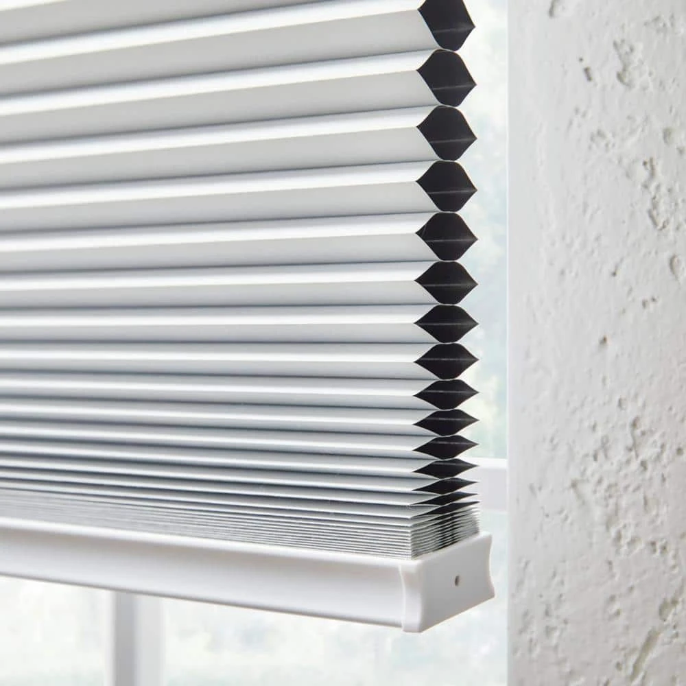 Enjoy the newly designed Home Decorators Collection Winter White motorized blackout cellular shade. The honeycomb construction creates air chambers that insulate and shield your room from the outside heat or cold. This unique feature helps lower your heating or cooling bills all year round. The energy efficient fabric design has the ability to block sunlight and provides complete privacy to your home. The honeycomb-shaped cells are made with durable, spun lace fabric that form crisp, clean pleats that will keep your windows looking sleek. The shade is completely cordless, and therefore 100% child and pet safe. These blackout cellular shades can be paired with the Home Decorators Collection Motorization Kit to convert your shades from manual to motorized operation.