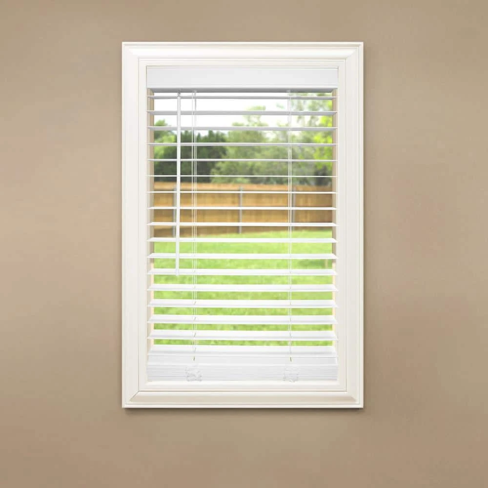 - For an inside mount, faux wood blind fits windows: 35 in. W