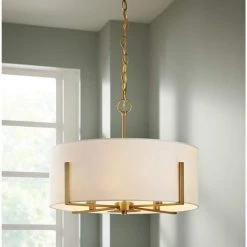 Home Decorators Collection Manhattan 4-Light Aged Brass Chandelier with Cream Colored Drum Shade