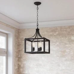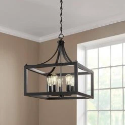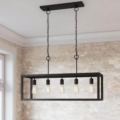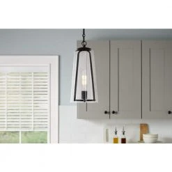 Home Decorators Collection 1-Light Black Metal Industrial Farmhouse Hanging Kitchen Pendant Light
