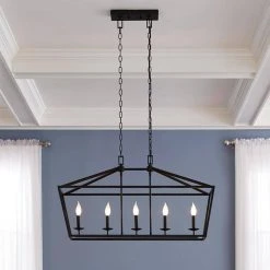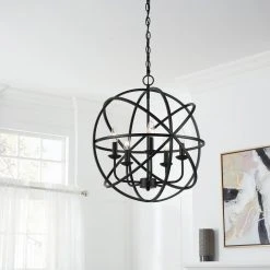 Home Decorators Collection Manhattan 4-Light Matte Black Pendant Hanging Light with White Drum Shade