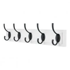 Home Decorators Collection Snap Install 27 in. White Hook Rack with 5 Satin Nickel Pilltop Hooks